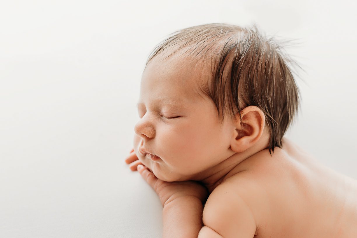 The studio is all white and has a very airy feel to it. My approach can be best described as a fusion of posed newborn photography with more natural ,organic approach ( the image of the baby above-is an example-of an ” unposed, organic” pose. I simply laid this baby on it’s back and photographed her without making too many changes to they way she naturally positioned herself.